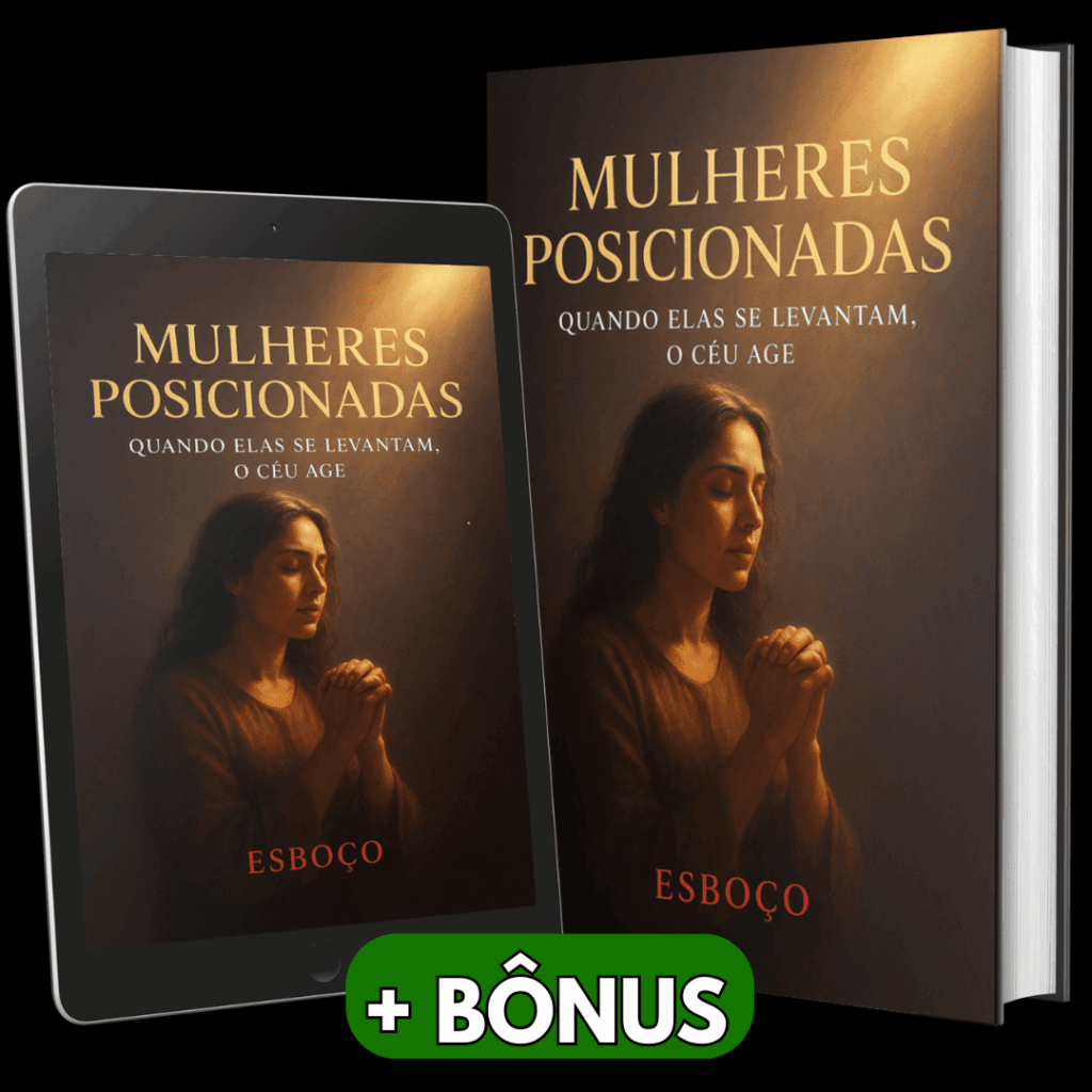 Você terá acesso ao Esboço Poderoso “Mulheres Posicionadas – Quando Elas Se Levantam, o Céu Age”, com revelações bíblicas profundas, aplicações práticas e um apelo transformador, para pregar com ousadia, despertar o chamado de outras mulheres e liberar o mover de Deus por onde passar!
